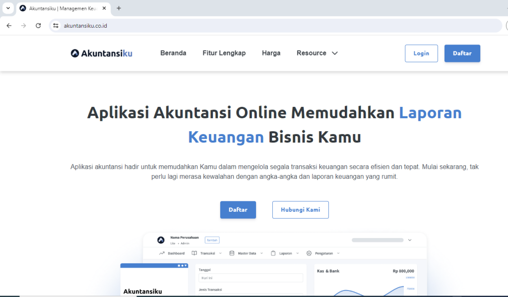 Buka browser Anda dan kunjungi halaman utama Akuntansiku. Pastikan Anda berada di website resmi agar proses berjalan aman.