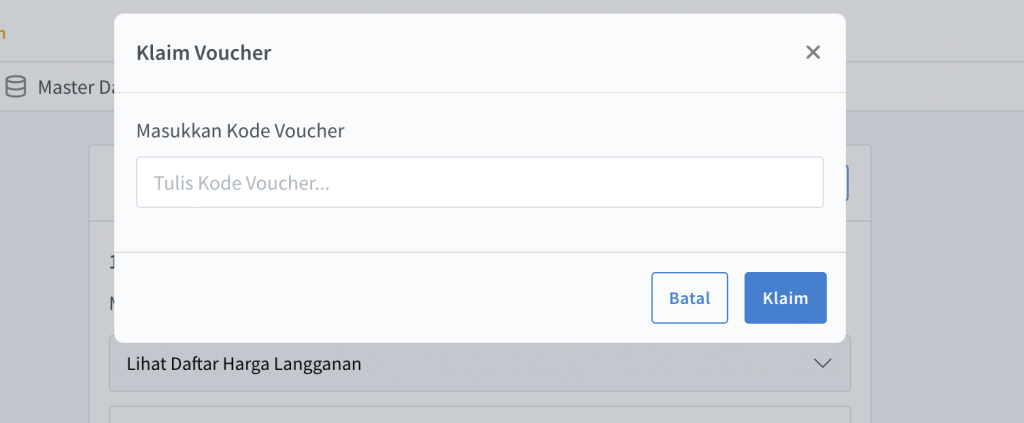 Masukkan kode voucher yang Anda terima, lalu klik Klaim. Secara otomatis, waktu langganan Anda akan bertambah.